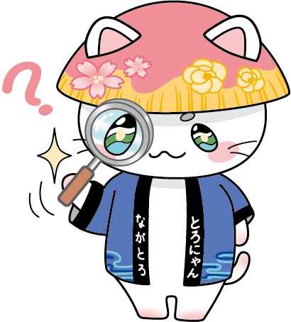 「とろにゃん」のデザインを使用する場合は、個人的または限られた範囲内で使用する場合等を除いて、事前に長瀞町の承認が必要となります。