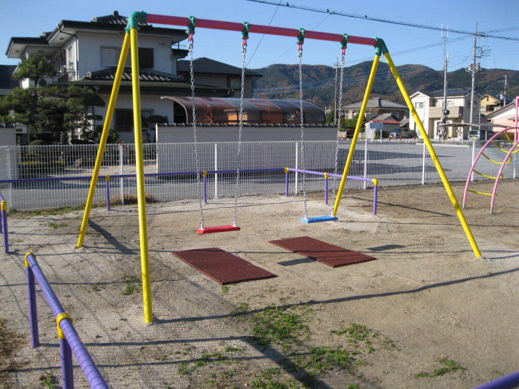 公益財団法人ライフスポーツ財団から交付された、子ども活動支援金(100万円)を活用し、新たにブランコとスイング遊具を設置しました。