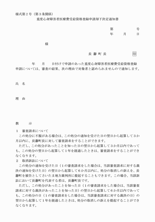 ○長瀞町重度心身障害者医療費支給に関する条例施行規則