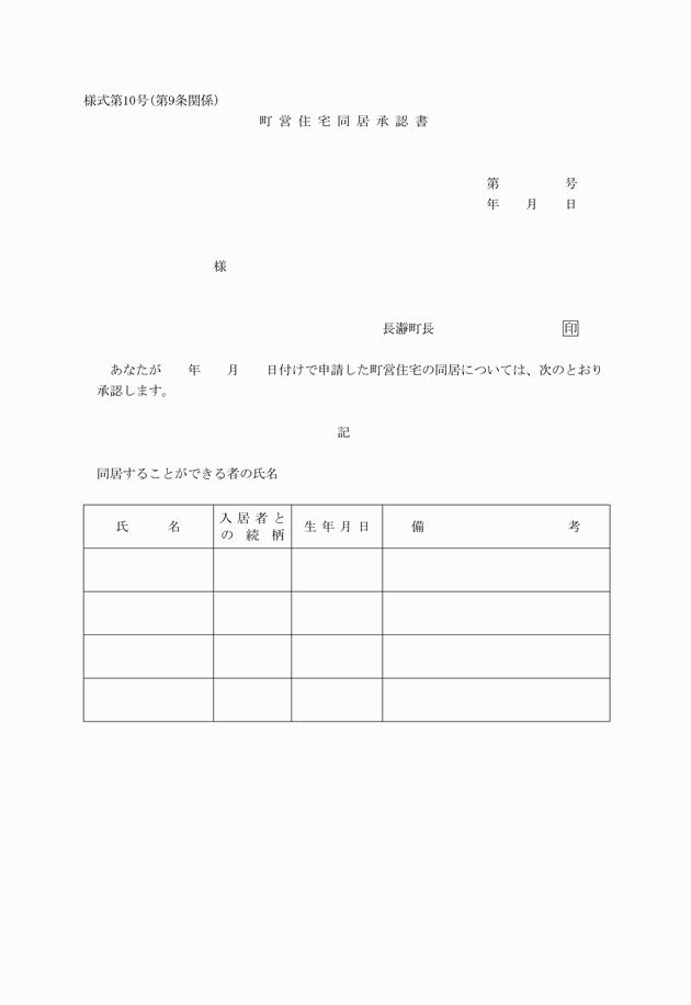 第5条 条例第12条第1項第1号の規定により、入居決定者は、町営住宅入居請書(様式第4号)を町長に提出しなければならない。