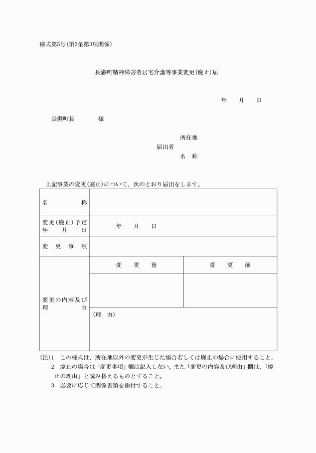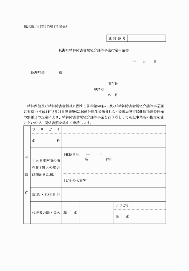 第3条 この事業を運営しようとする者は、長瀞町精神障害者居宅介護等事業指定申請書(様式第1号)を町長に提出し、あらかじめその指定を受けることとする。