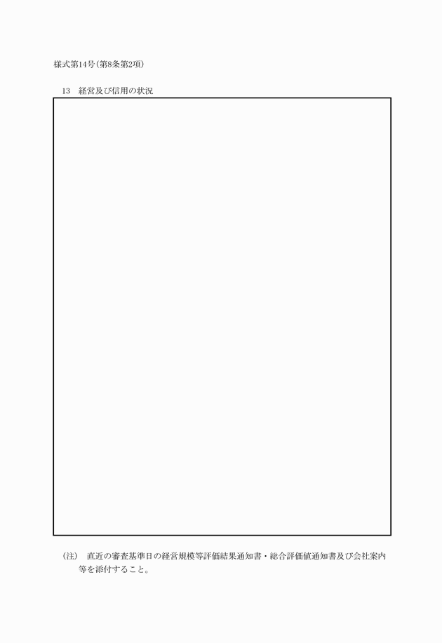 (13) 経営及び信用の状況(様式第14号)