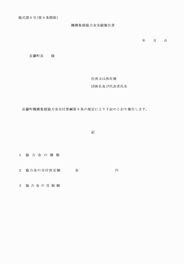第10条 町長は、実績報告の提出を受けた場合においては、当該実績報告に係る書類審査及び必要に応じて行う現地調査等により、その報告に係る補助対象事業の成果を調査し、適合すると認めたときは、交付すべき補助金の額を確定し、長瀞町機構集積協力金交付額確定通知書(様式第7号)により交付決定者に報告するものとする。